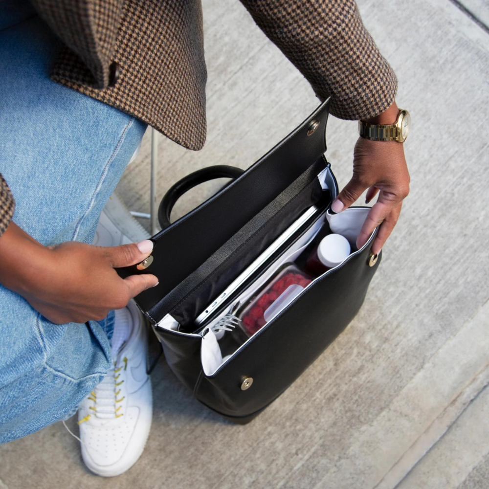 Meet the Modern Picnic Backpack - A chic, vegan leather backpack with a padded laptop sleeve and insulated compartment; perfect for carrying your laptop, lunch + more. Your day is packed, let us carry some of the weight.