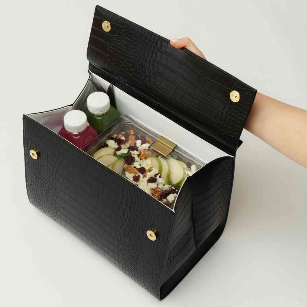 The luncher just got larger. A chic, functional alternative to the traditional lunchbox with an insulated interior and vegan leather exterior. Fit your breakfast, lunch, dinner + more. The lunchbox reinvented.